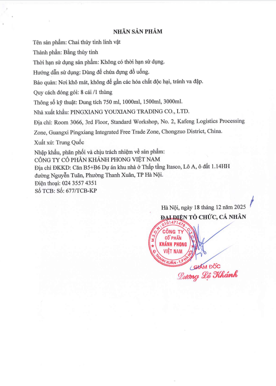 Dung tích 750 ml, 1000ml, 1500ml, 3000ml.